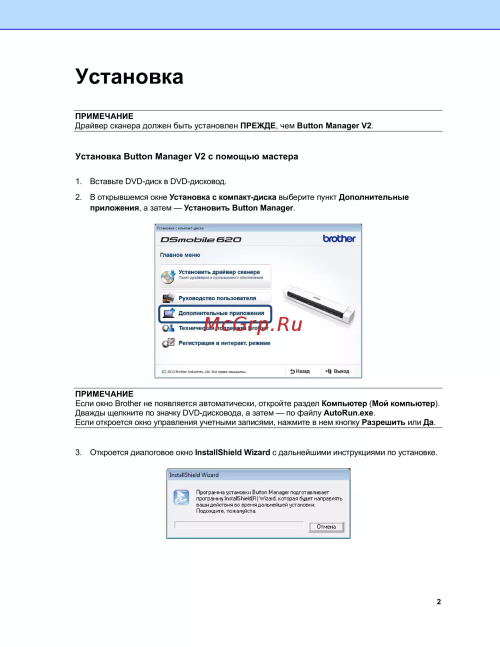 Brother DS-620Руководство пользователя ПО Button Manager V2 -