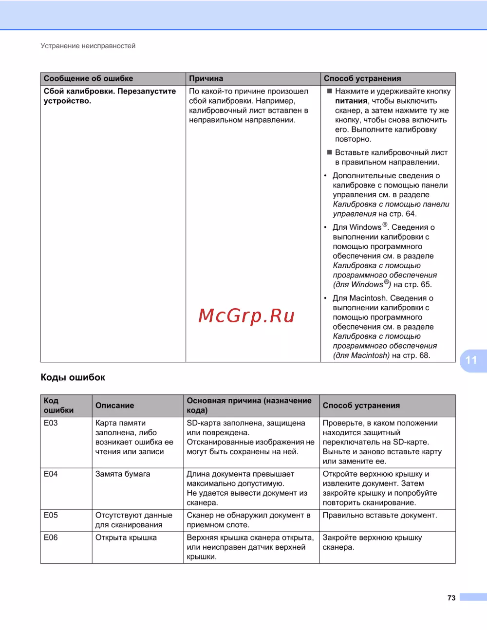 Brother DS-820W — устранение неисправностей: коды ошибок и их решения [81/100]