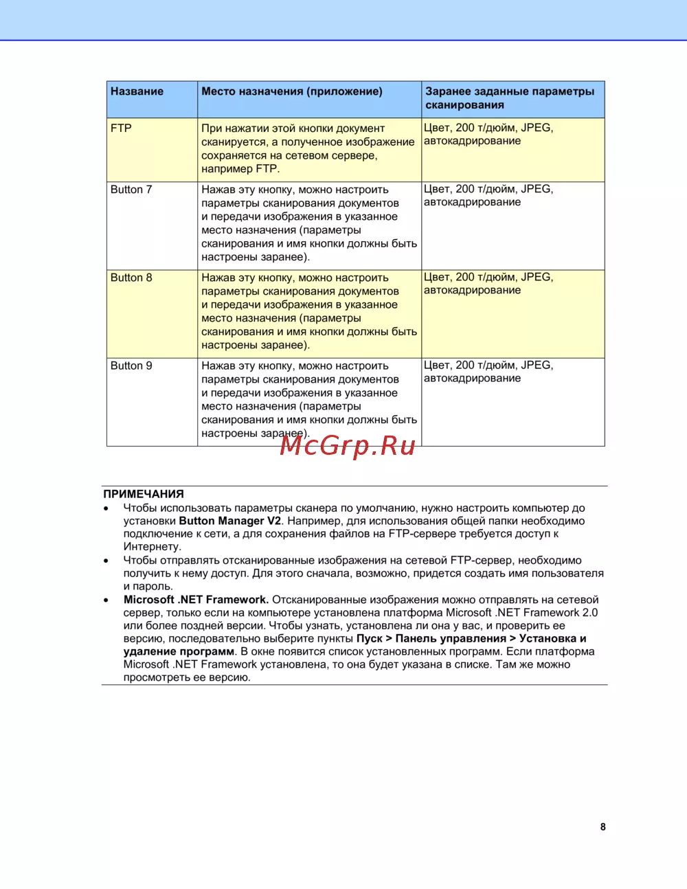 • Microsoft .NET Framework. Отсканированные изображения можно отправлять на сетевой