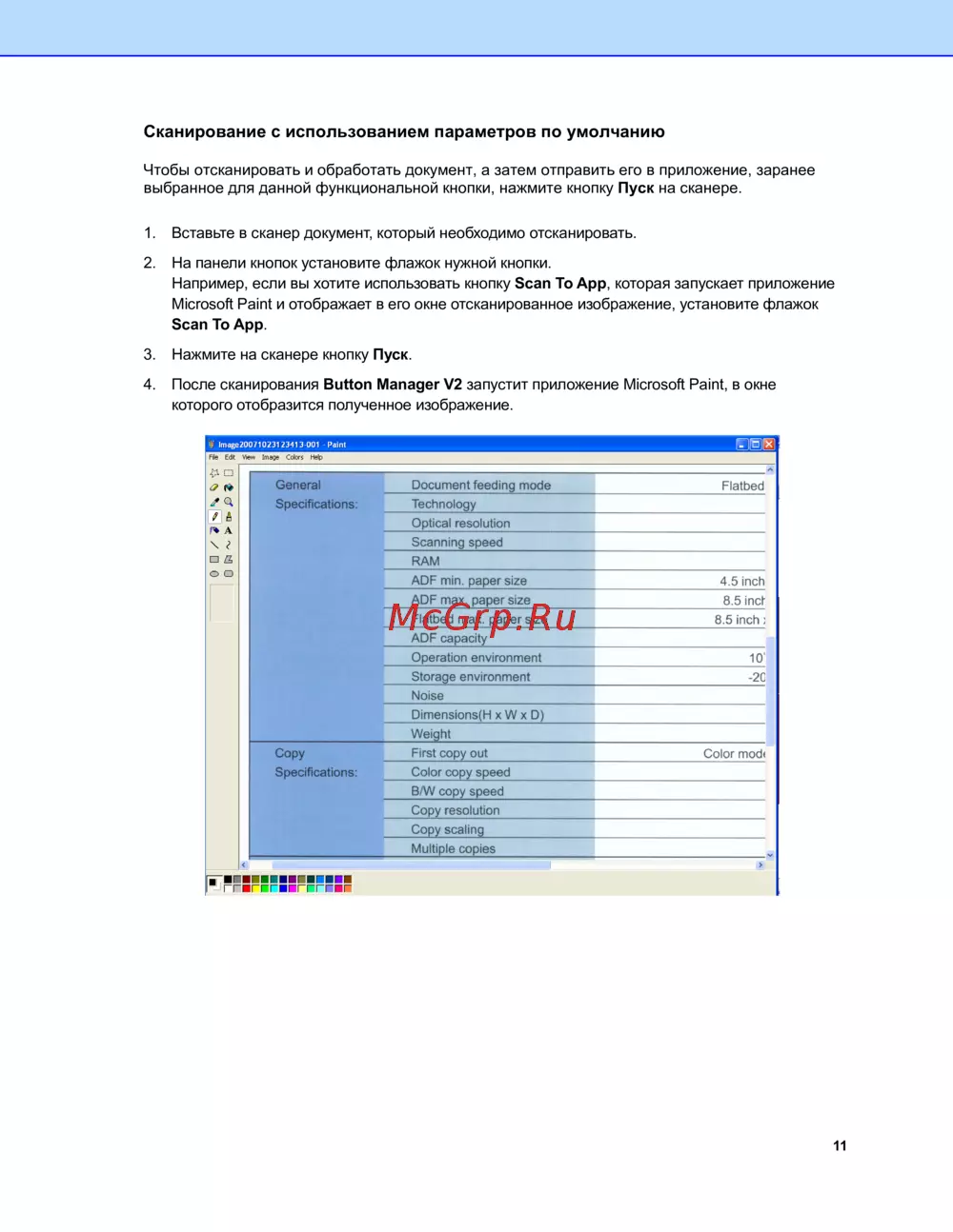 4. После сканирования Button Manager V2 запустит приложение Microsoft Paint, в окне