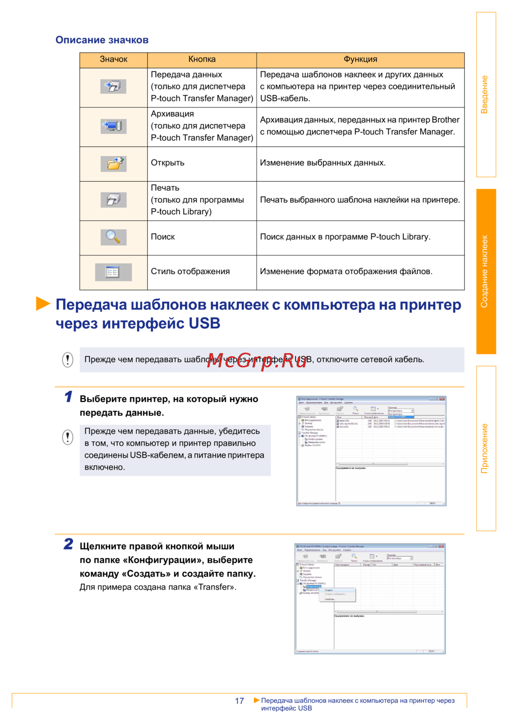 - Использование диспетчера p touch transfer manager только для модели pt 9700pc p.16