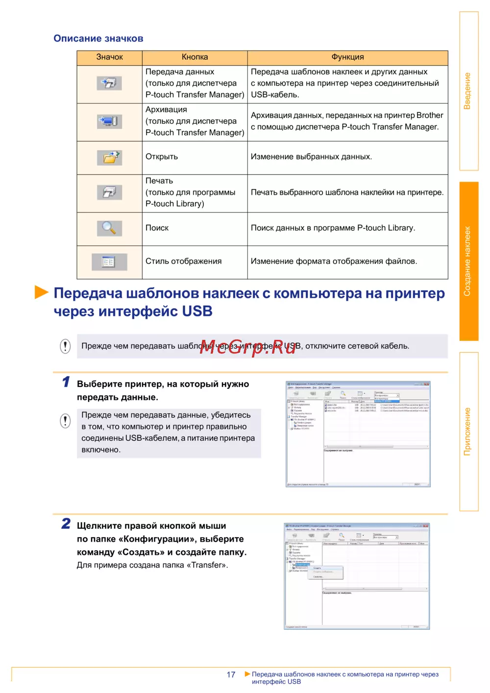 - Передача шаблонов наклеек с компьютера на принтер через интерфейс usb p.17