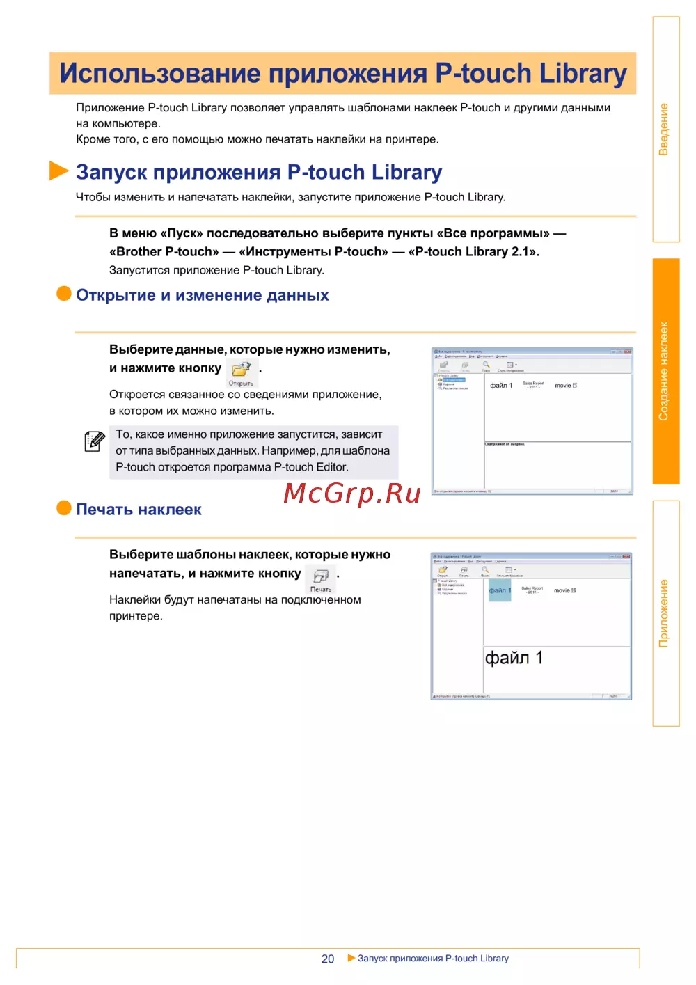 - В меню пуск последовательно выберите пункты все программы brother p touch инструменты p touch p touch library 2 p.20