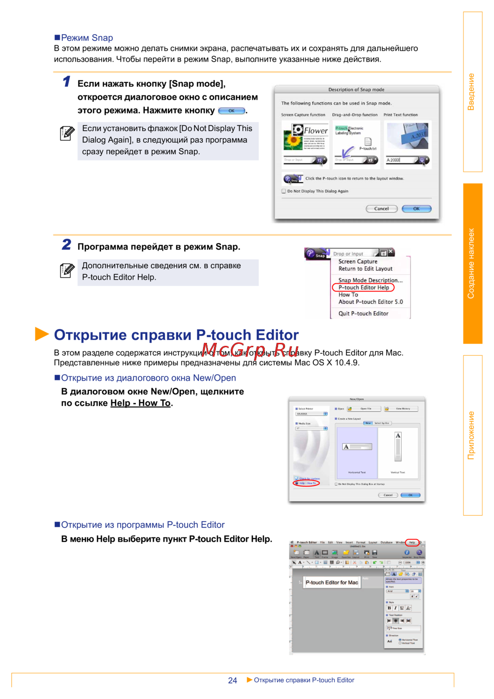 В этом разделе содержатся инструкции о том, как открыть справку P-touch Editor для Mac.