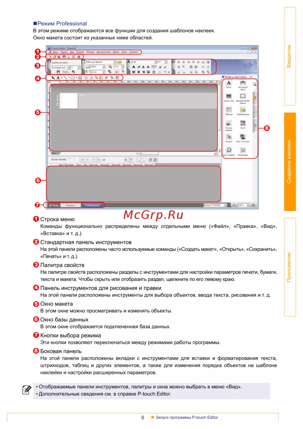 - Запуск программы p touch editor p.4