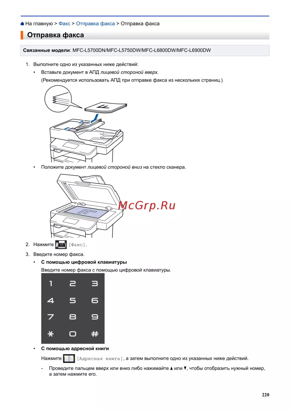 Brother MFC-L5700DN — как отправить факс: пошаговая инструкция для пользователей [227/733]