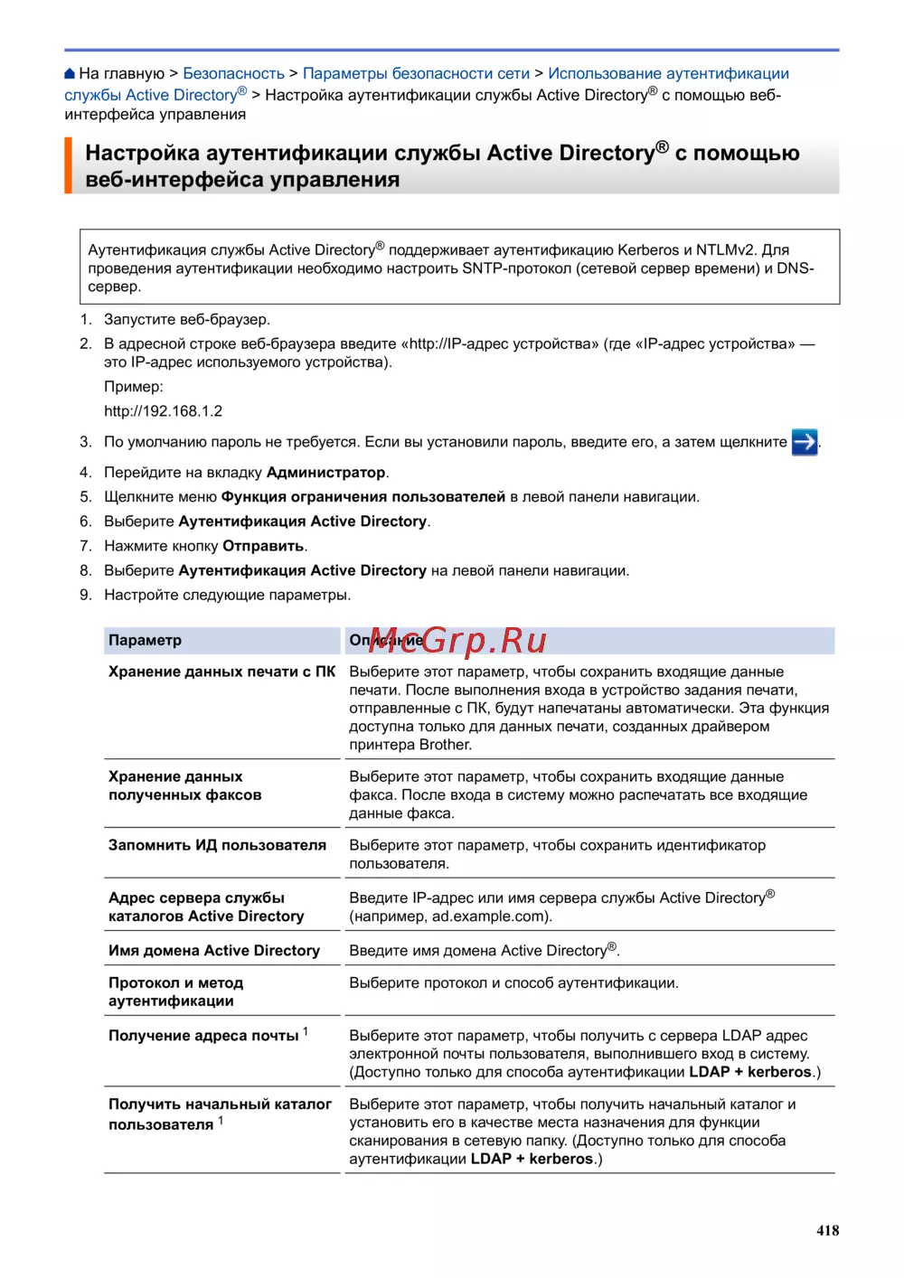 поддерживает аутентификацию Kerberos и NTLMv2. Для