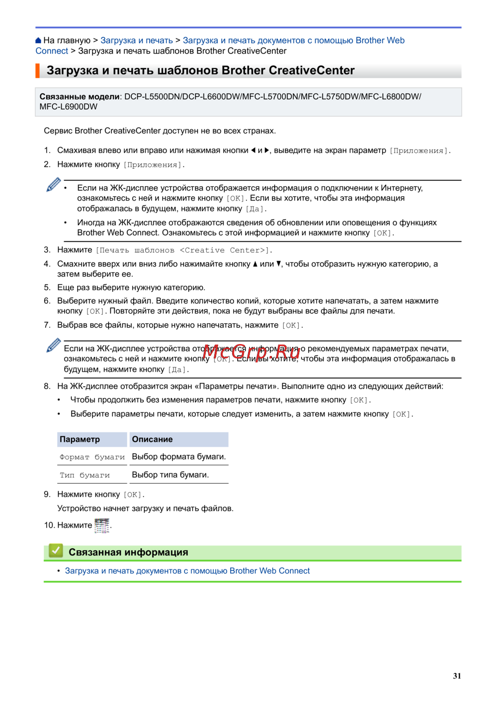 - Загрузка и печать шаблонов brother creativecenter p.36
