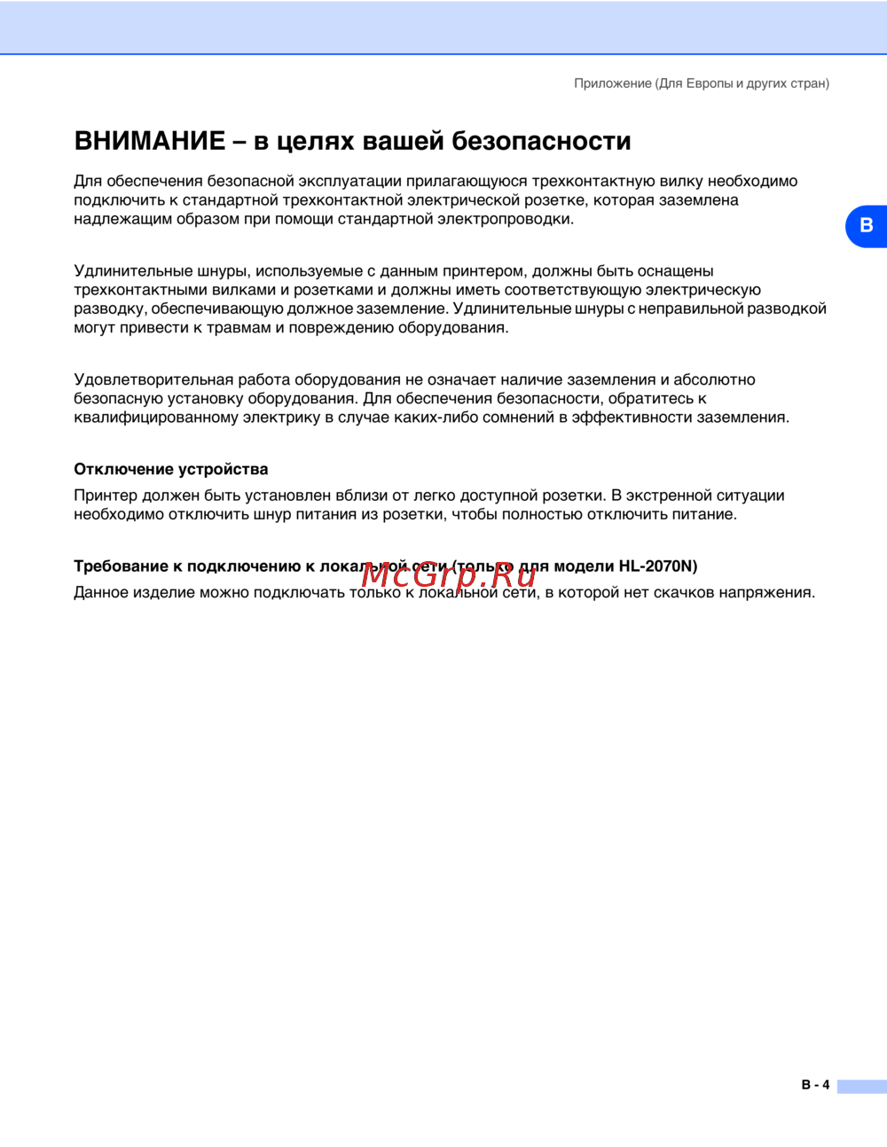 Brother HL-2030R — инструкции по безопасному подключению электрических устройств [101/105]