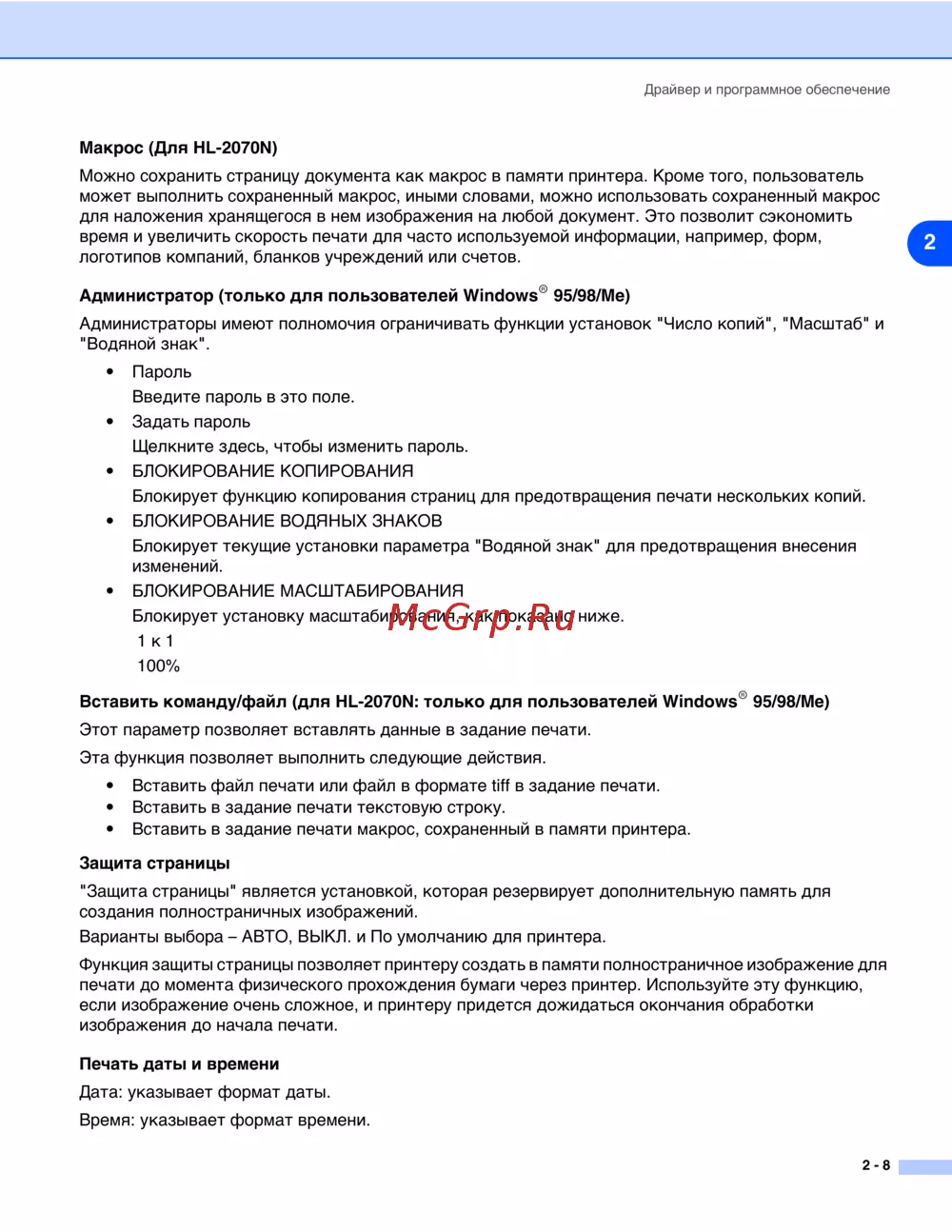 Brother HL-2030R — макросы и настройки печати для эффективного использования принтера [34/105]