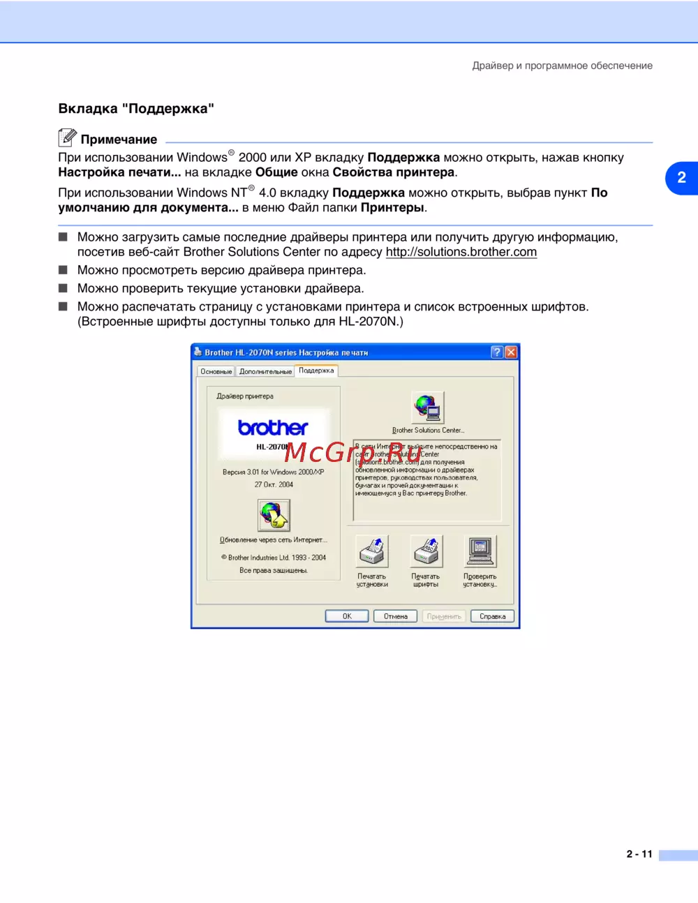 Brother HL-2030R — как открыть вкладку поддержки для драйвера принтера [37/105]
