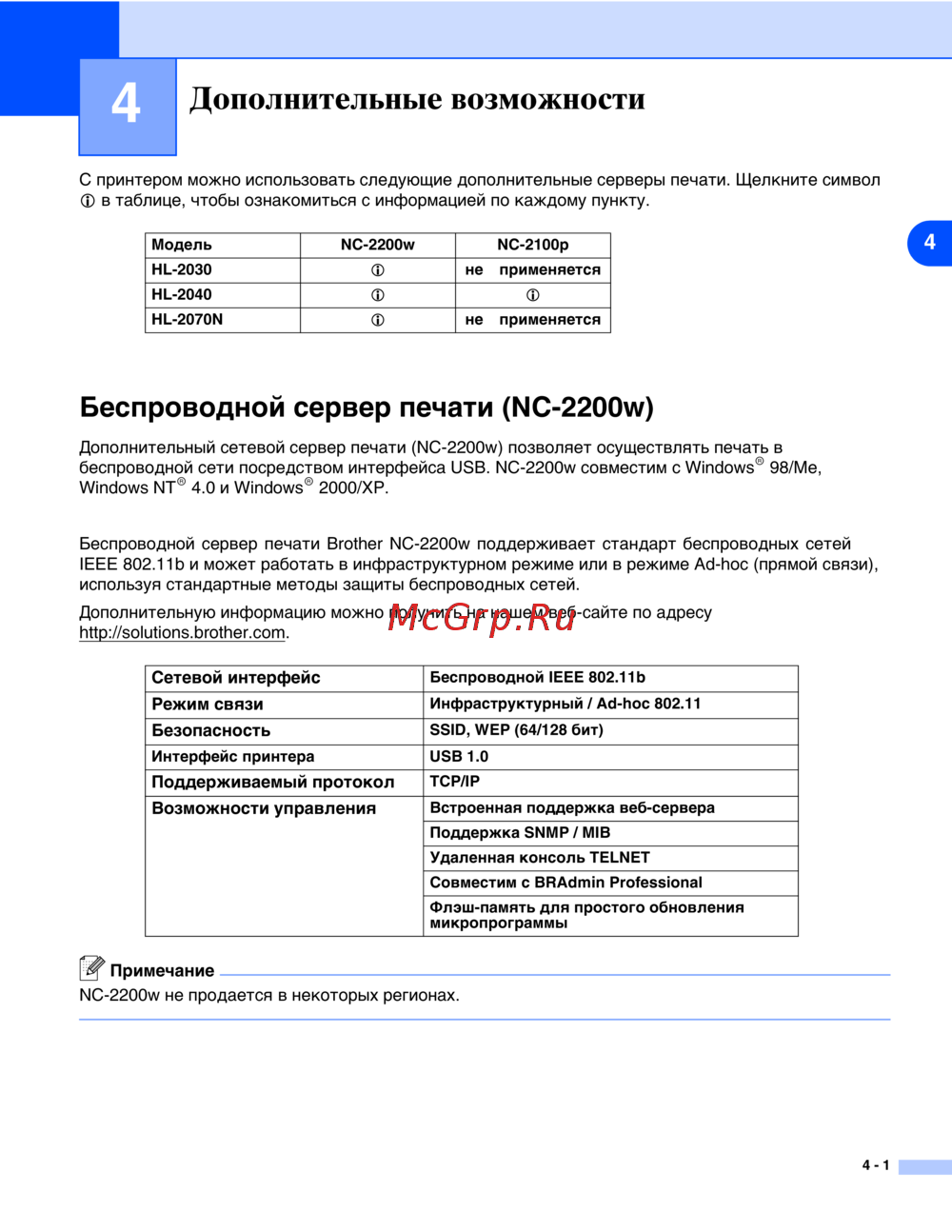 Brother HL-2030R — дополнительные возможности беспроводного сервера печати [55/105]