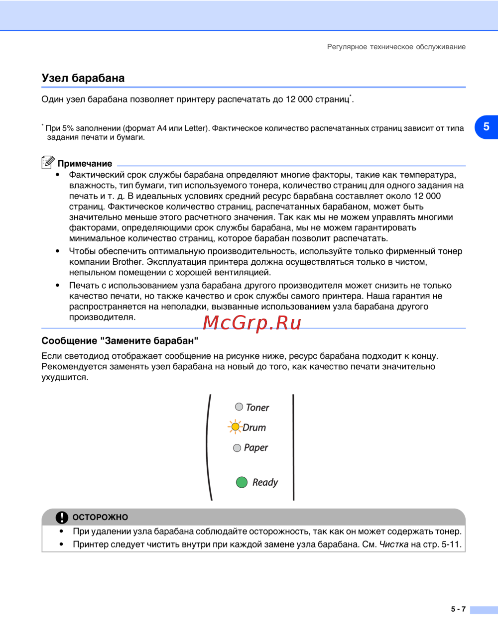 страниц. Фактическое количество страниц, распечатанных барабаном, может быть