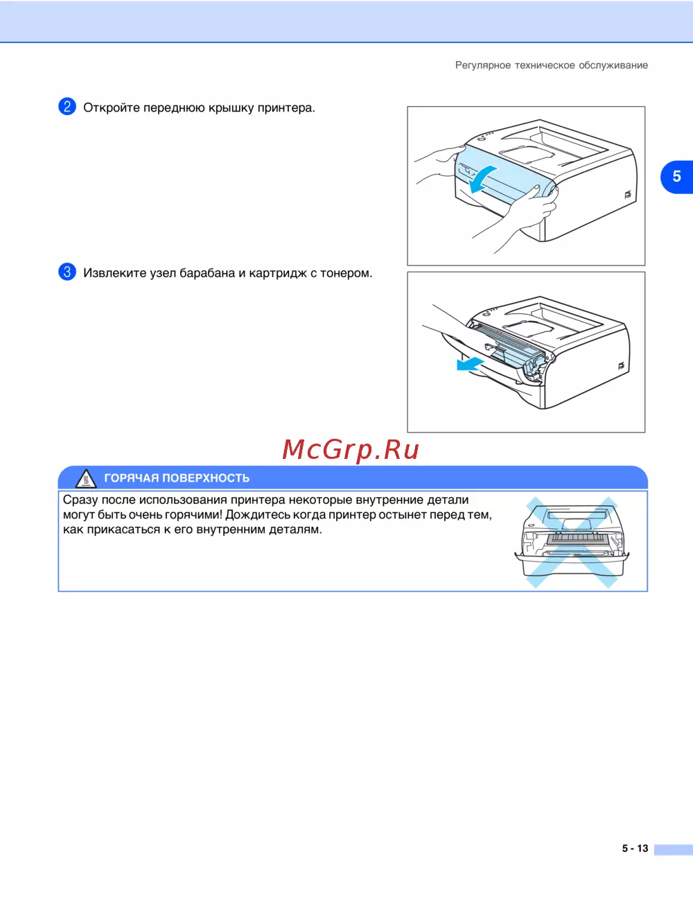 - Сразу после использования принтера некоторые внутренние детали могут быть очень горячими дождитесь когда принтер остынет перед тем как прикасаться к его внутренним деталям p.69