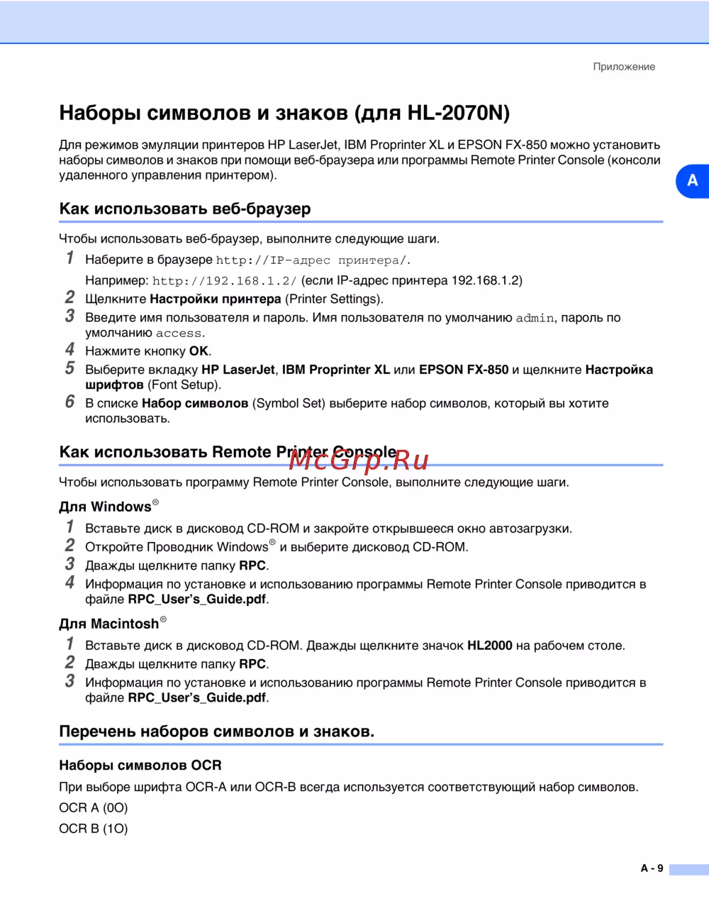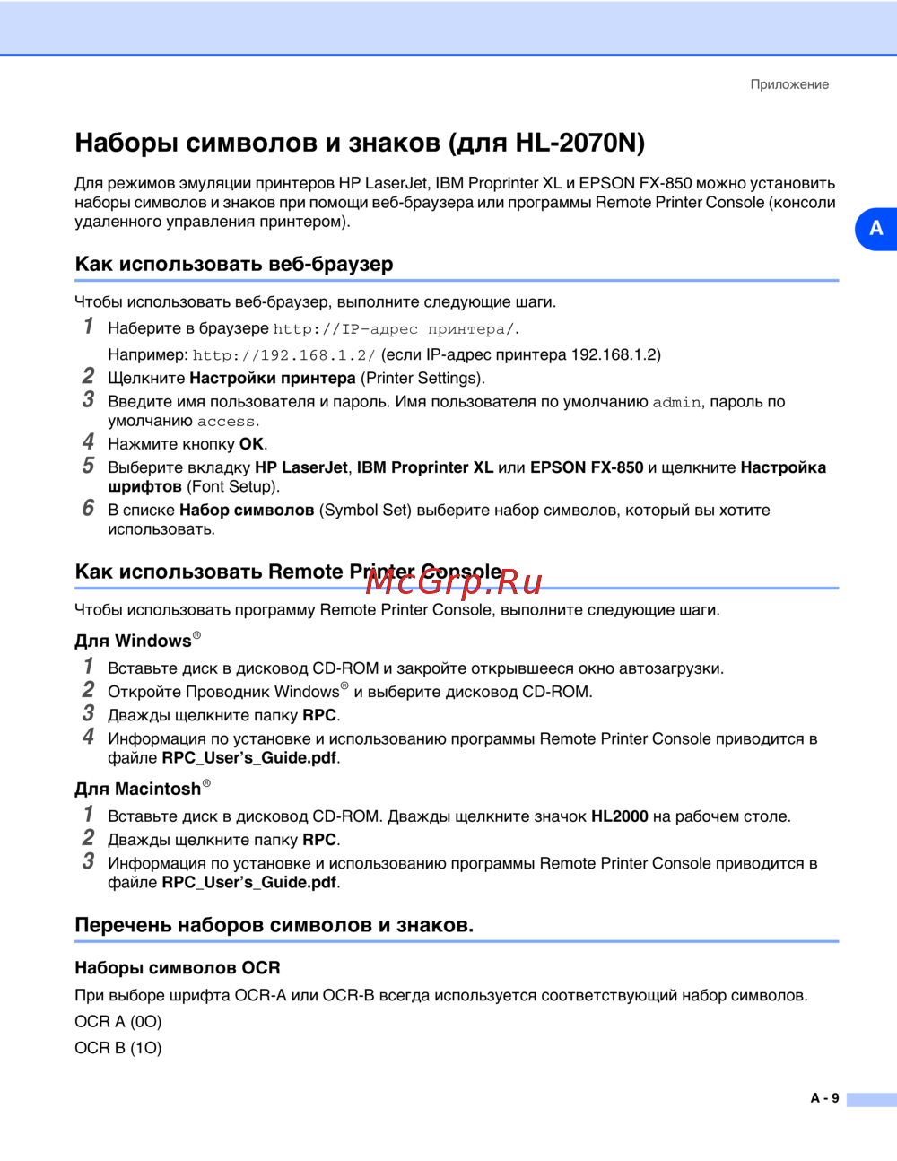 Brother HL-2030R — настройка наборов символов для принтеров через веб и консоль [95/105]