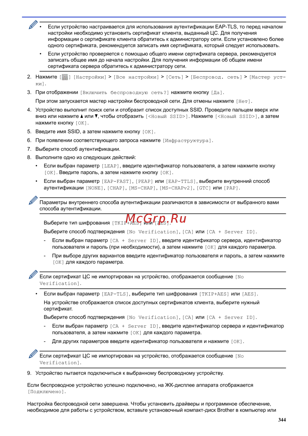 Brother MFC-L5750DW — настройка беспроводной сети и аутентификации EAP-TLS [351/733]