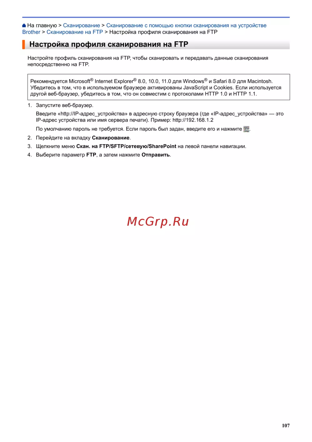 Brother > Сканирование на FTP > Настройка профиля сканирования на FTP