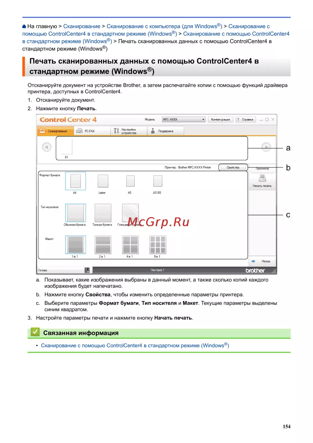 ) > Печать сканированных данных с помощью ControlCenter4 в