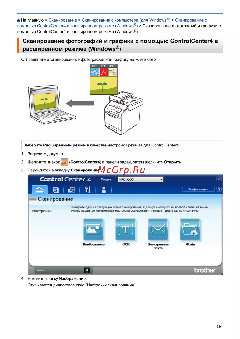 Сканирование фотографий и графики с помощью ControlCenter4 в