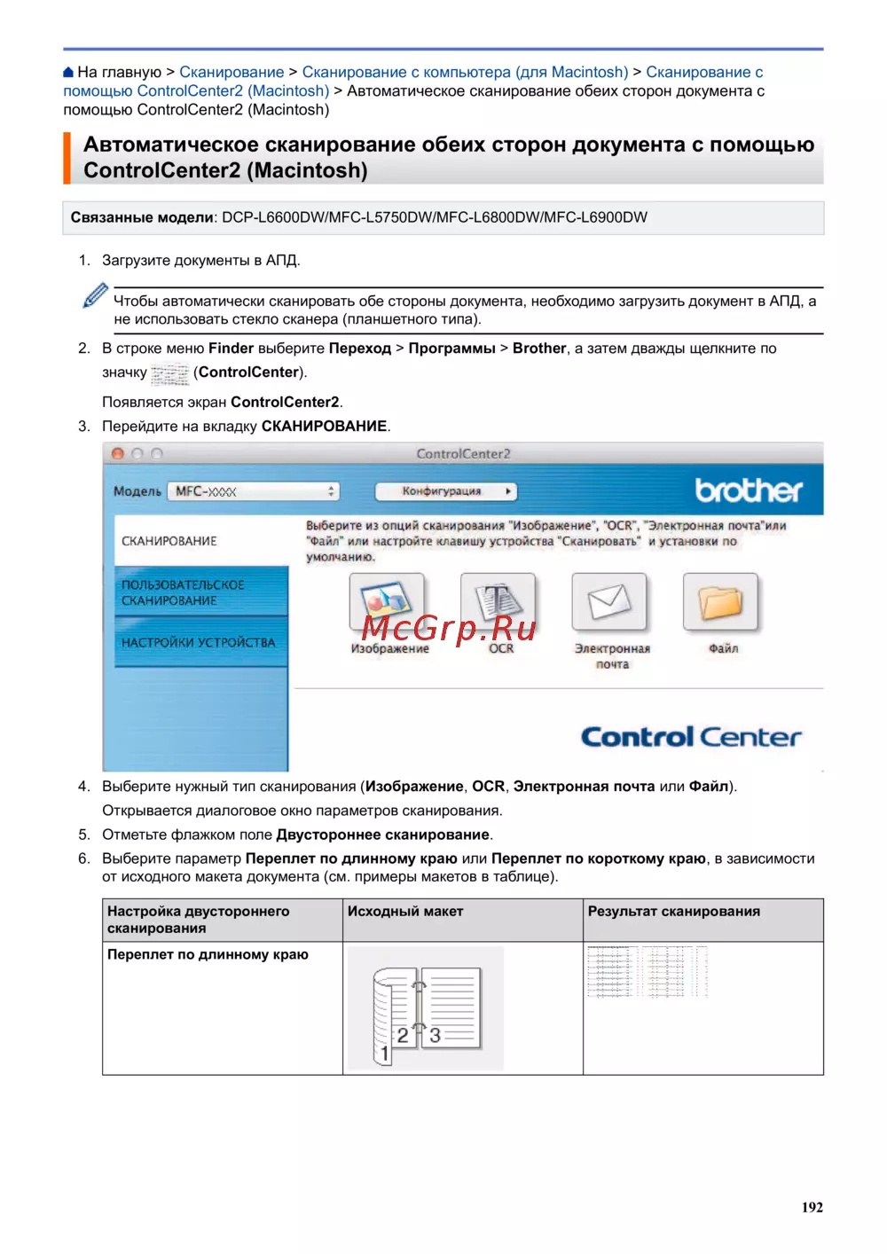 помощью ControlCenter2 (Macintosh) > Автоматическое сканирование обеих сторон документа с
