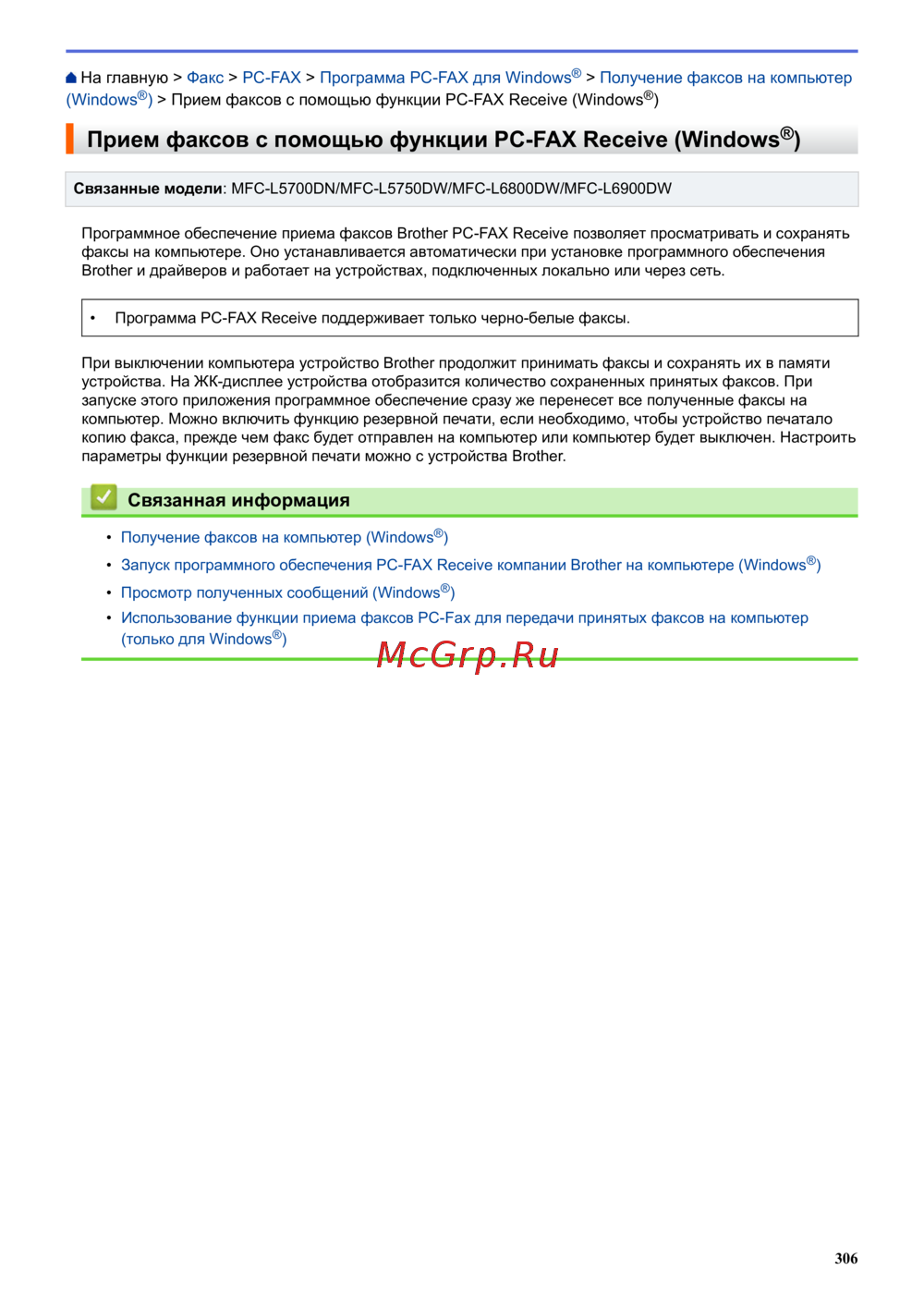 Программное обеспечение приема факсов Brother PC-FAX Receive позволяет просматривать и сохранять