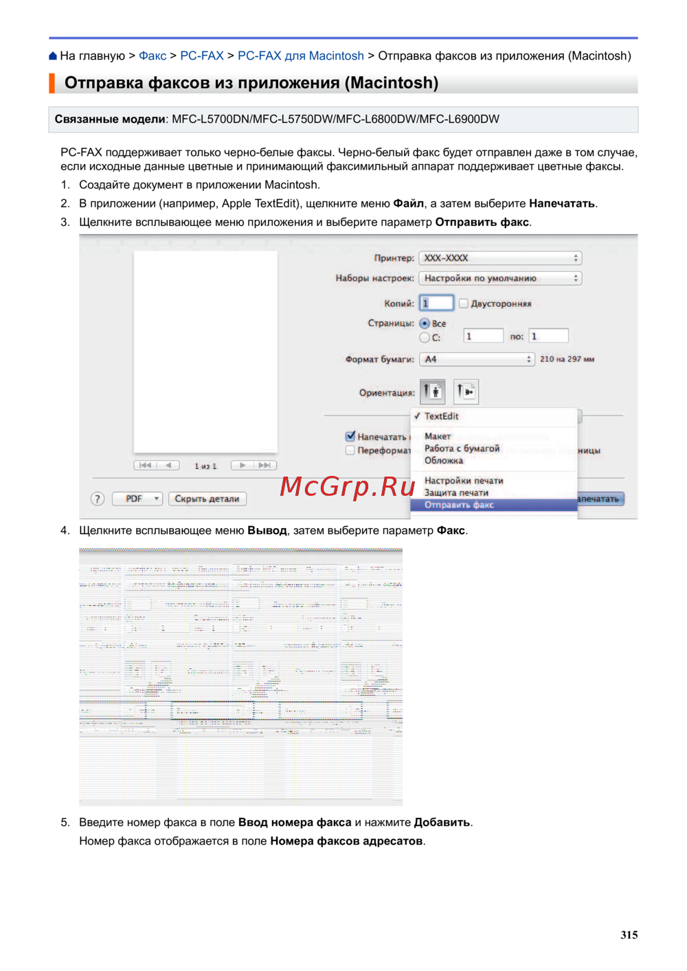 Brother MFC-L6900DW — как отправить факсы из приложения на Macintosh [322/733]