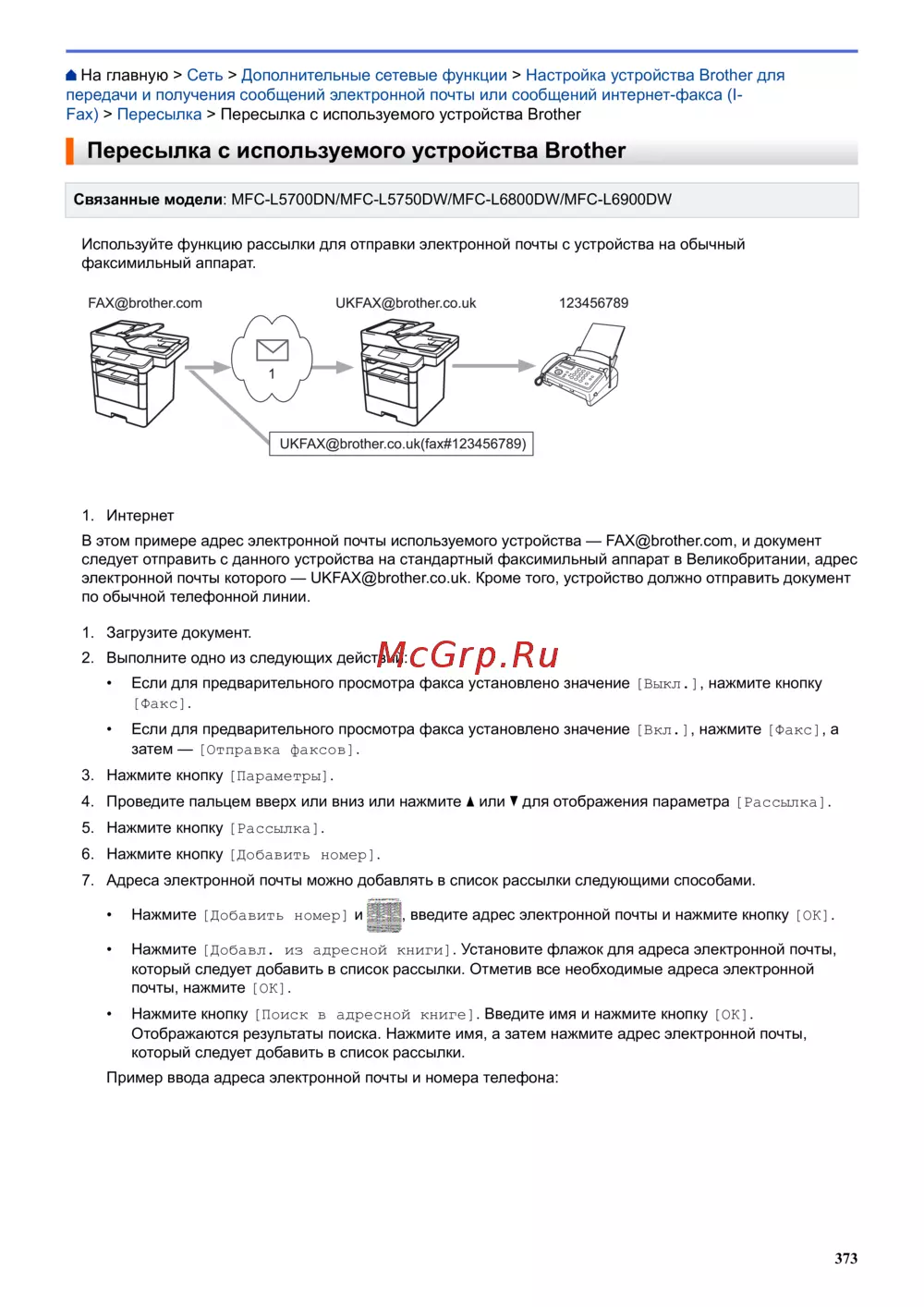 электронной почты которого — UKFAX@brother.co.uk. Кроме того, устройство должно отправить документ