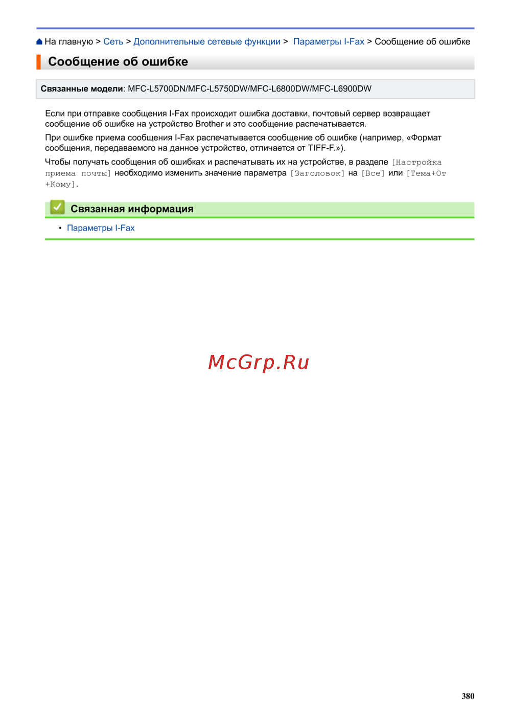 Brother MFC-L6900DW — ошибки доставки I-Fax: как их исправить и распечатать [387/733]