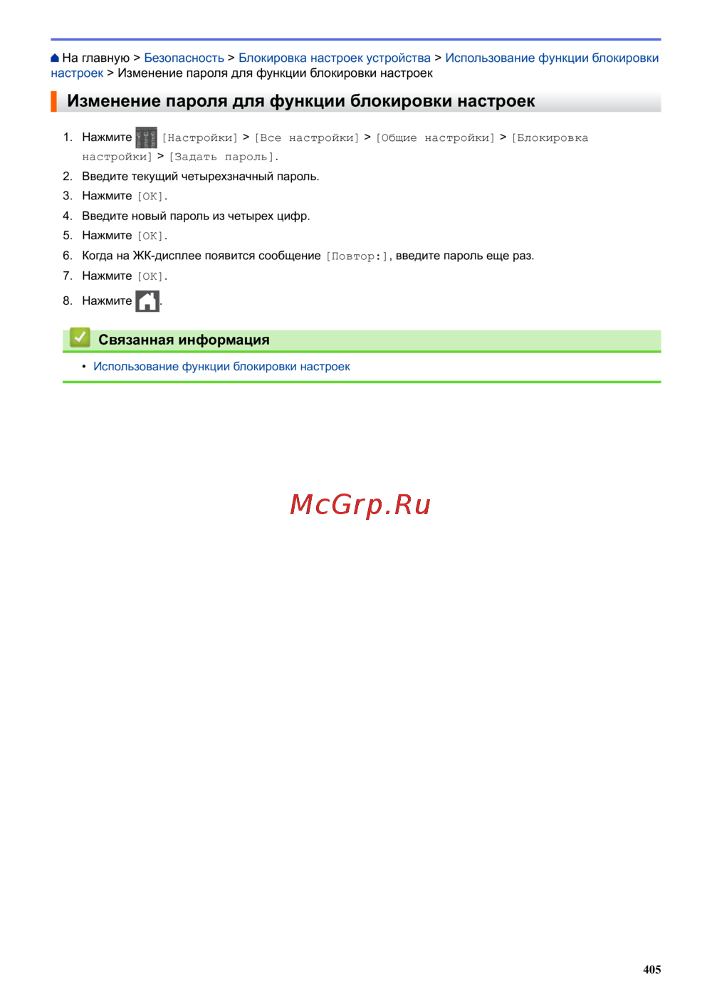 Brother MFC-L6900DW — как изменить пароль для блокировки настроек устройства [412/733]