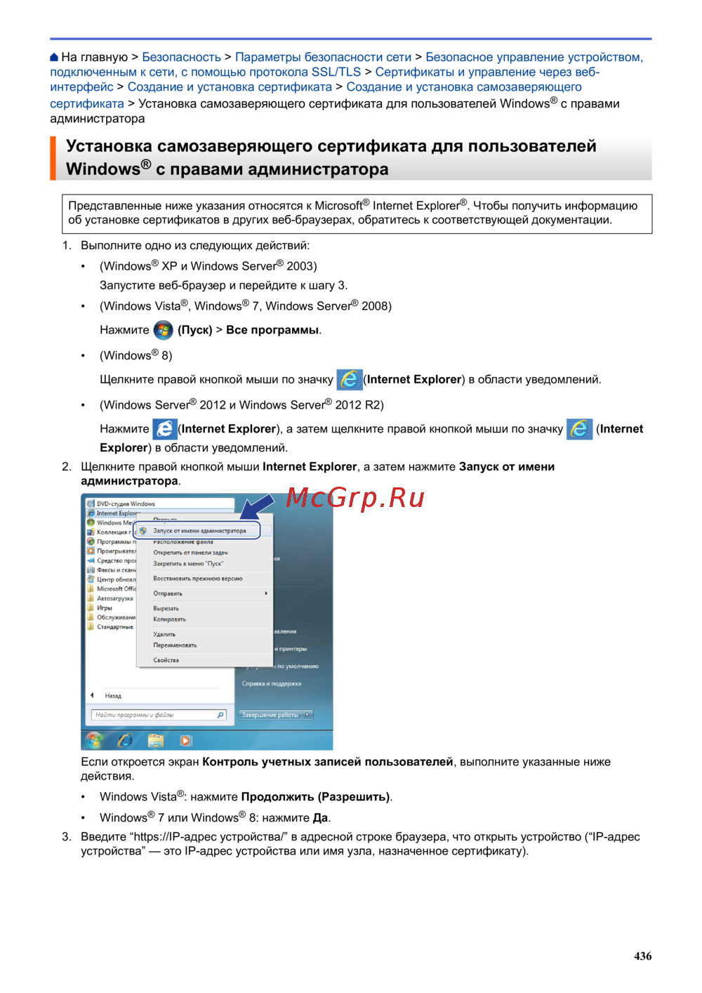 Brother MFC-L6900DW [443/733] Установка самозаверяющего сертификата для пользователей window