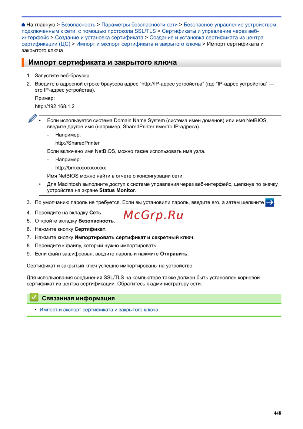 подключенным к сети, с помощью протокола SSL/TLS > Сертификаты и управление через веб-