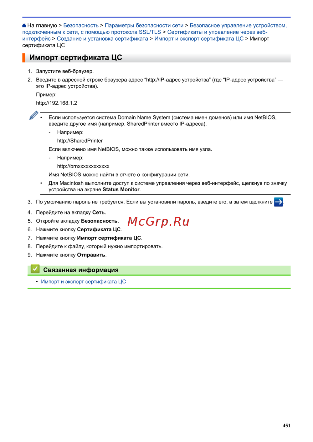 подключенным к сети, с помощью протокола SSL/TLS > Сертификаты и управление через веб-