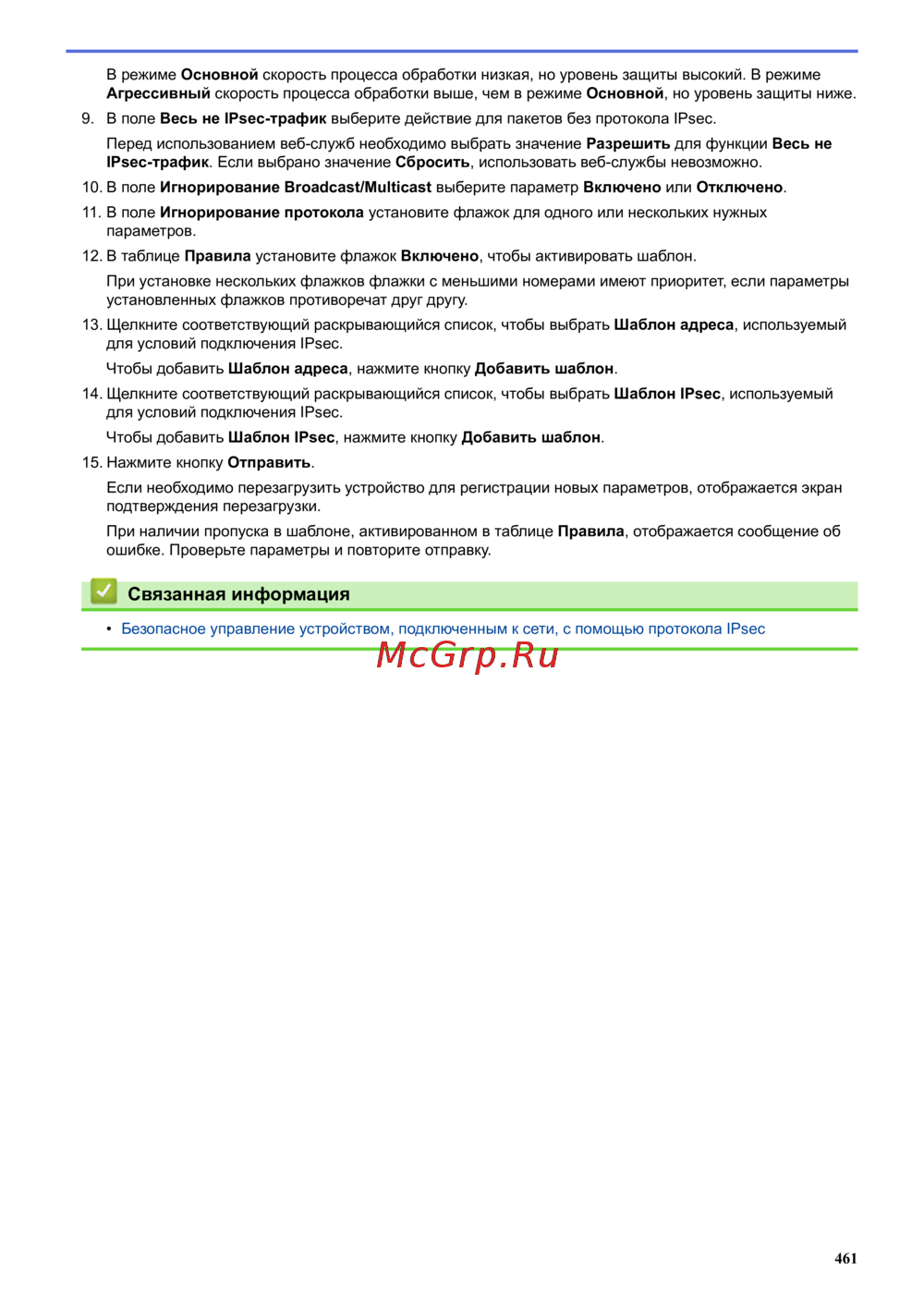 • Безопасное управление устройством, подключенным к сети, с помощью протокола IPsec