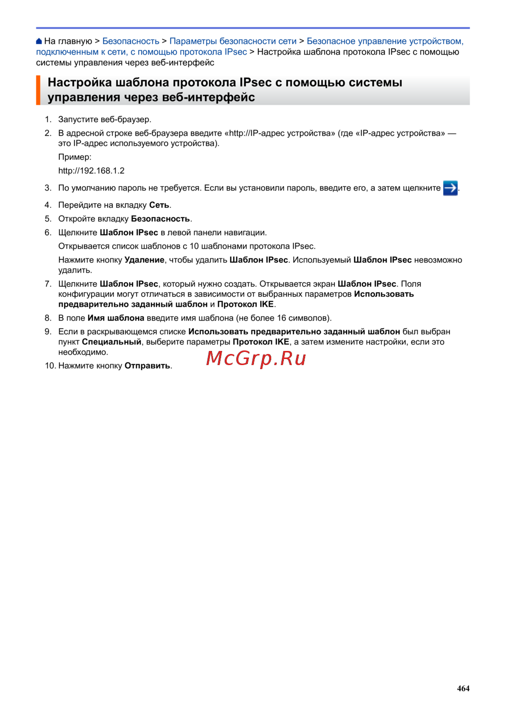 Brother MFC-L6900DW — настройка шаблона IPsec через веб-интерфейс: пошаговое руководство [471/733]