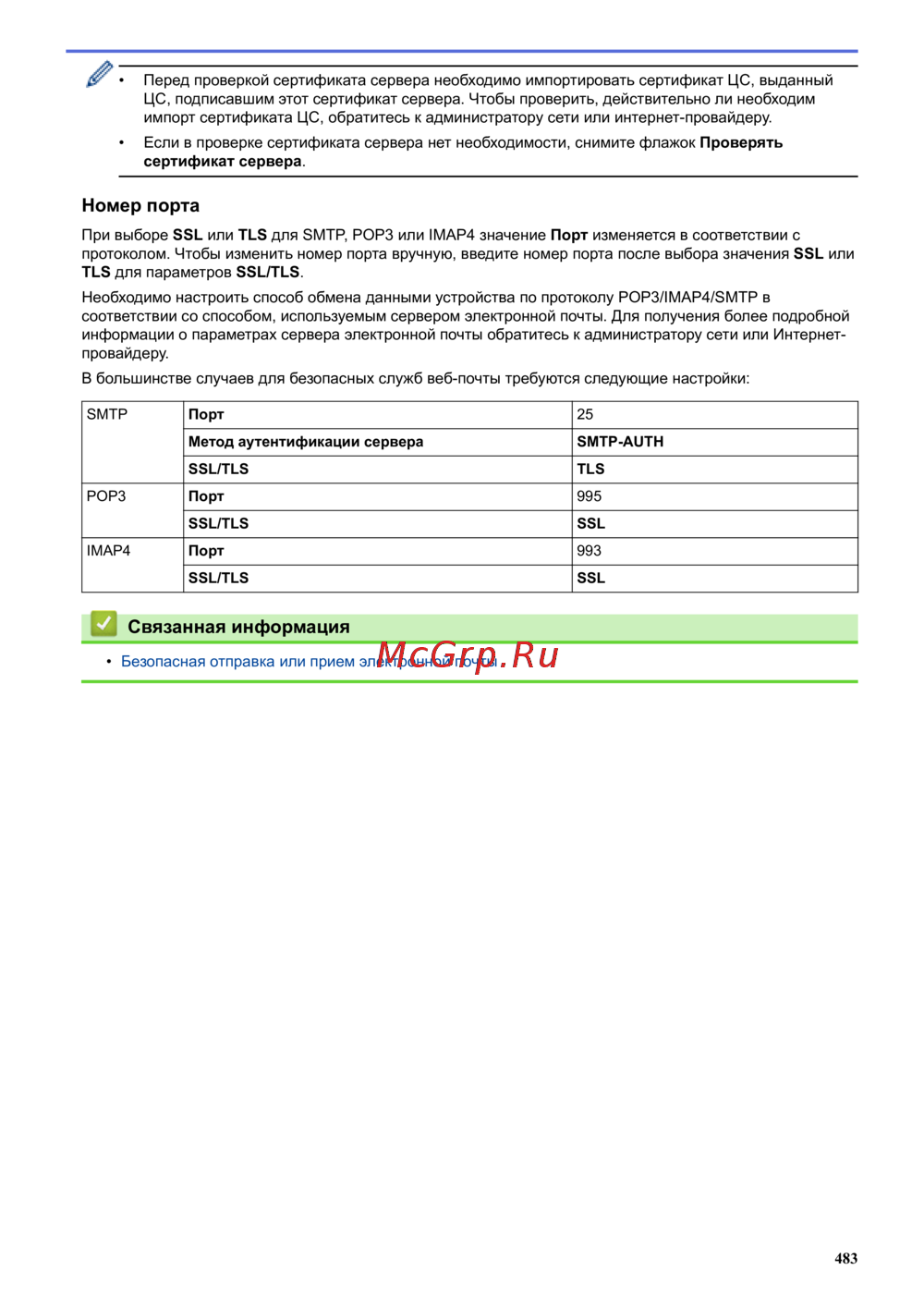 Brother MFC-L6900DW — настройка сертификатов и портов для безопасной электронной почты [490/733]