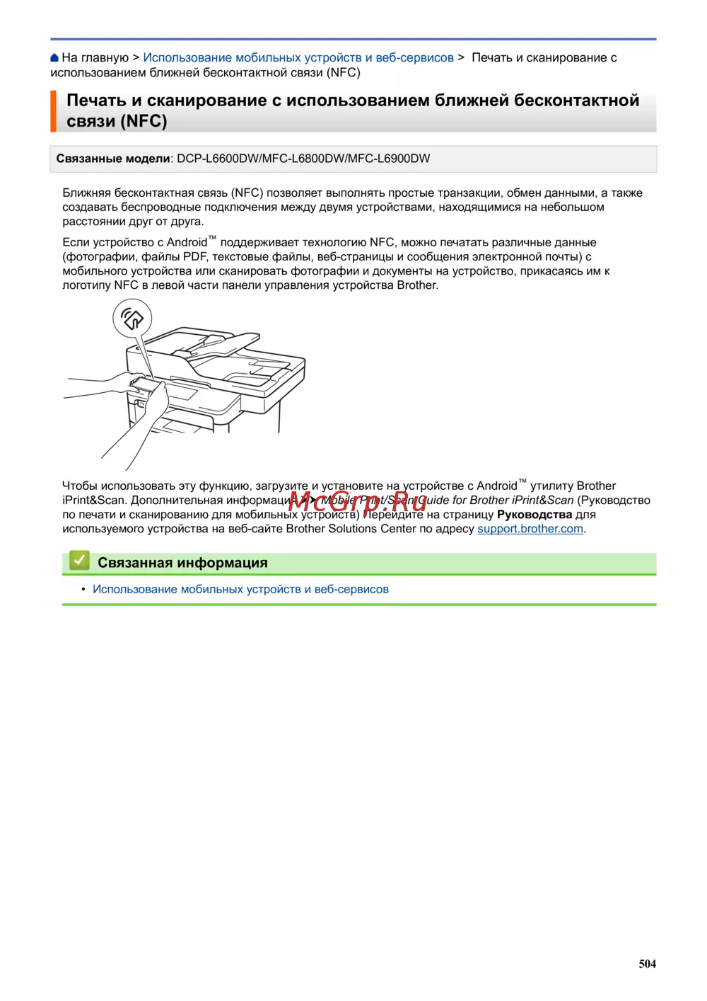 Brother MFC-L6900DW — как печатать и сканировать с NFC на мобильных устройствах [511/733]