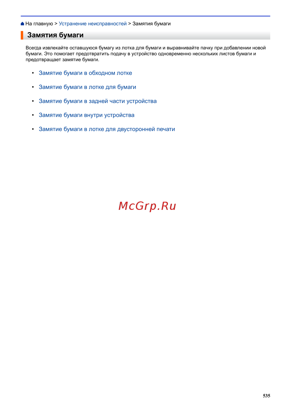На главную > Устранение неисправностей > Замятия бумаги