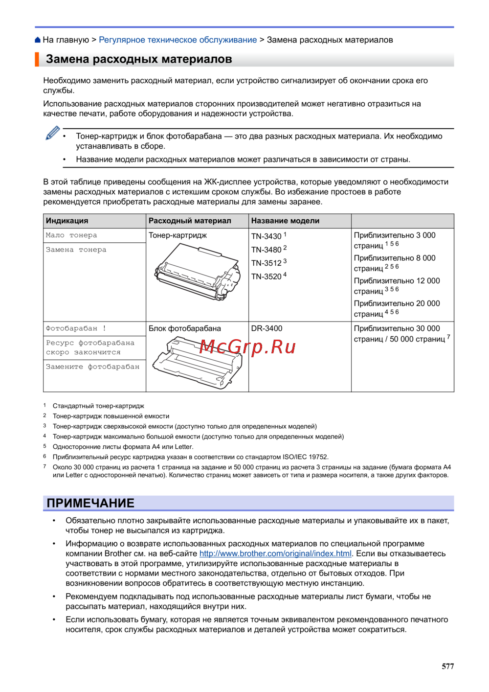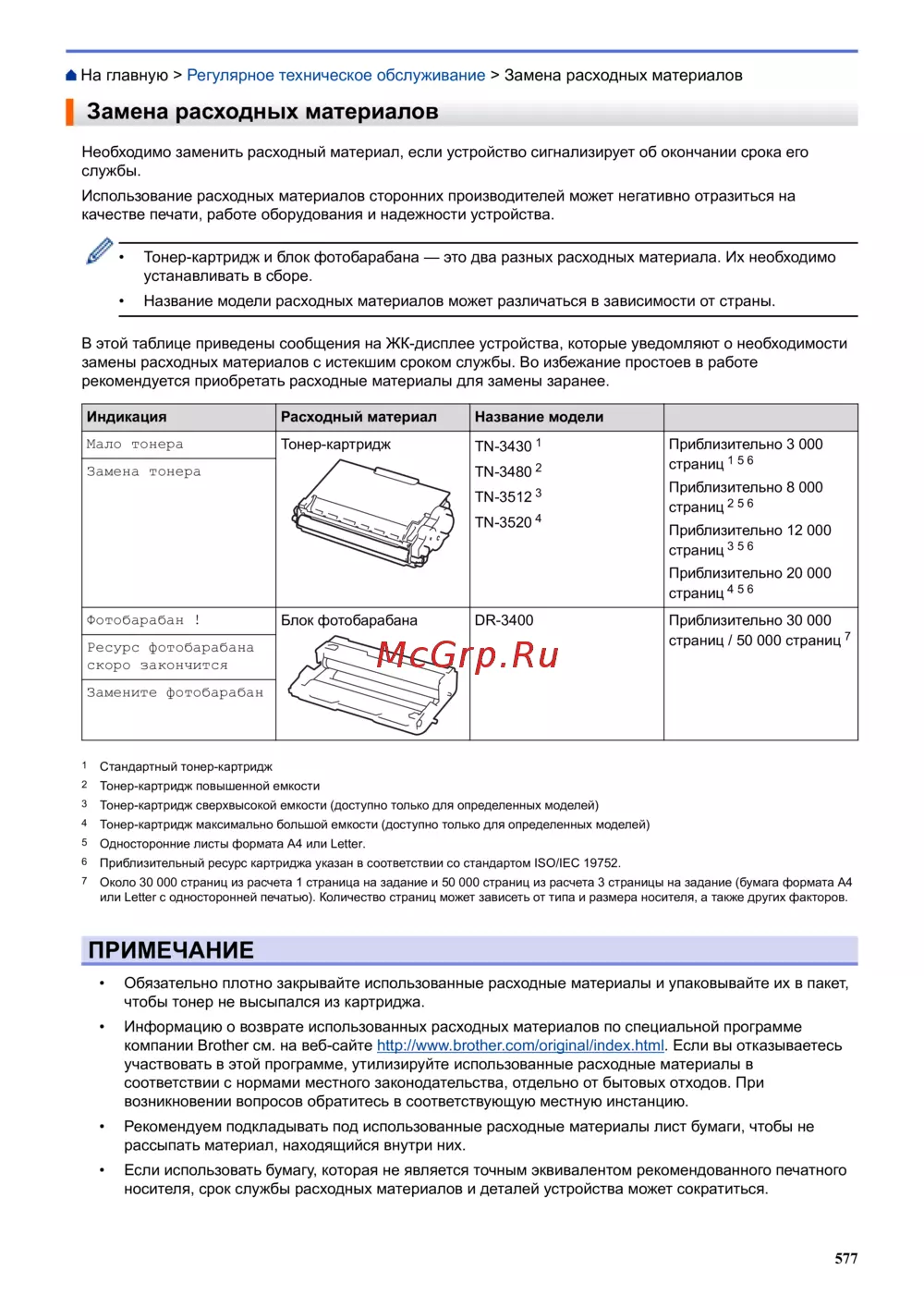 • Тонер-картридж и блок фотобарабана — это два разных расходных материала. Их необходимо