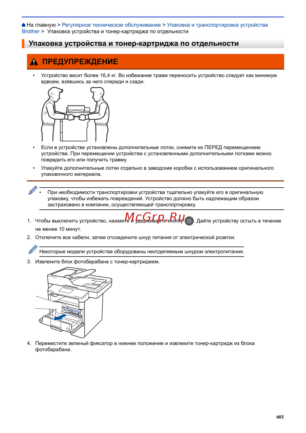 На главную > Регулярное техническое обслуживание > Упаковка и транспортировка устройства