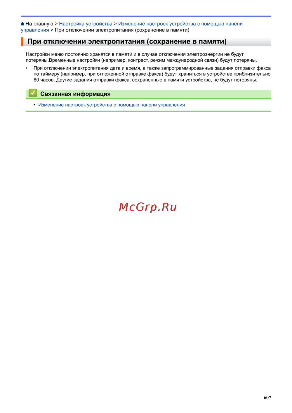 Brother MFC-L6900DW [614/733] При отключении электропитания сохранение в памяти