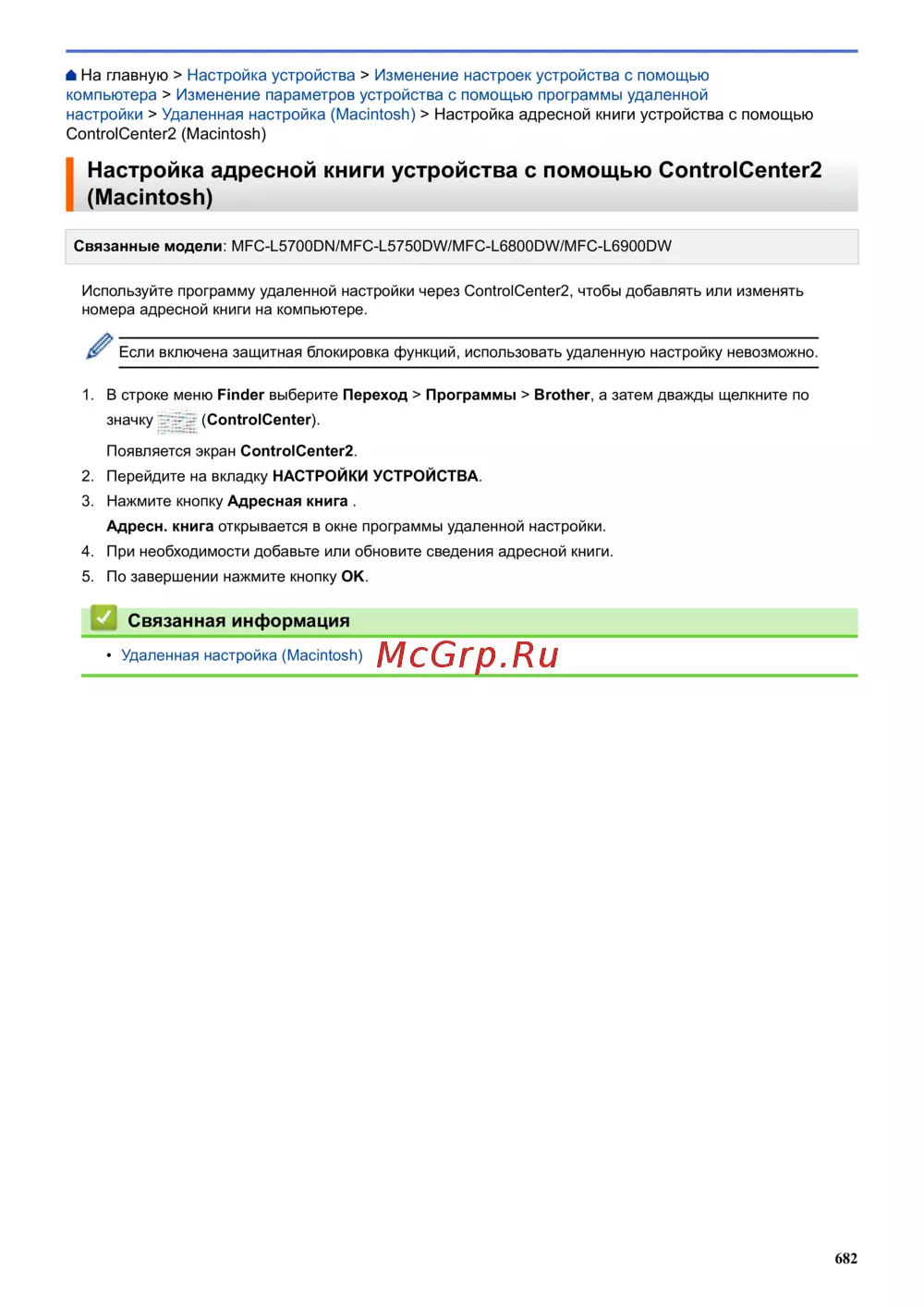 Связанные модели: MFC-L5700DN/MFC-L5750DW/MFC-L6800DW/MFC-L6900DW