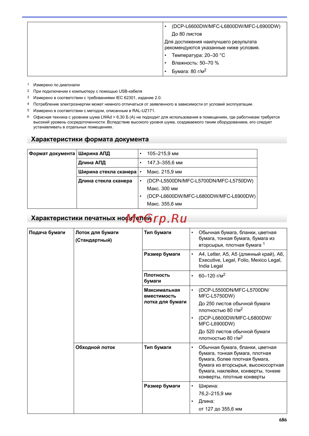 Brother MFC-L6900DW — характеристики офисной печатной техники и условий эксплуатации [693/733]