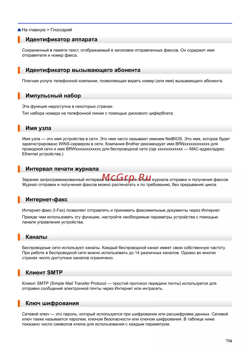 Brother MFC-L6900DW — глоссарий терминов: факсы, сети и электронная почта [723/733]