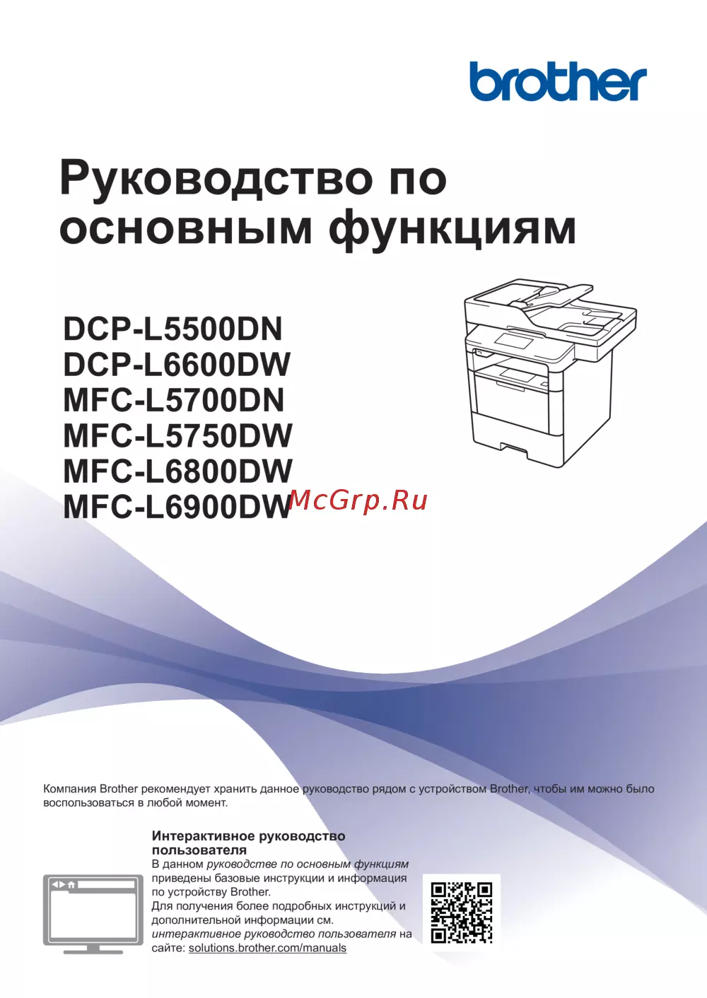 - Руководство по основным функциям dcp l5500dn dcp l6600dw mfc l5700dn mfc l5750dw mfc l6800dw mfc l6900dw p.1