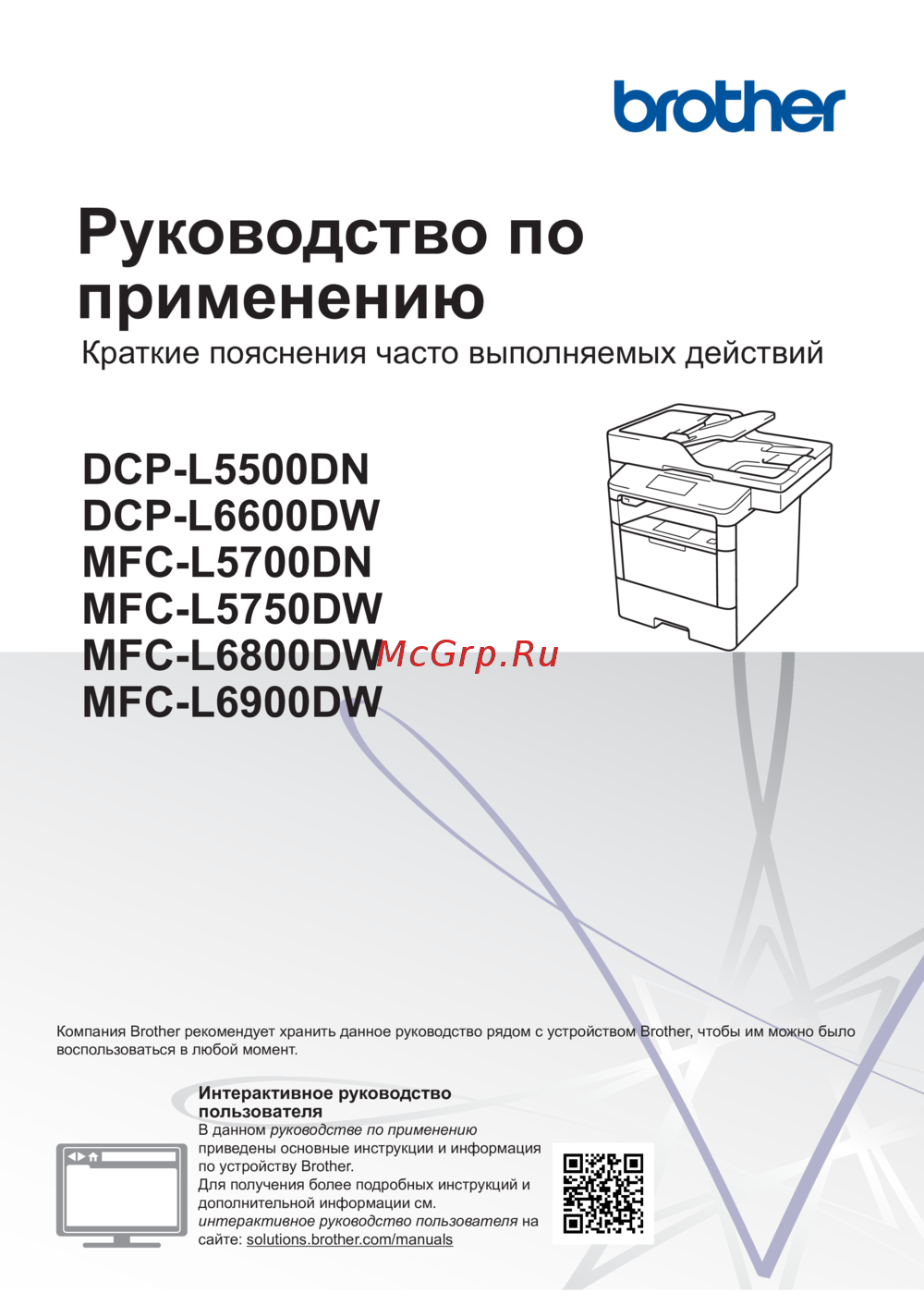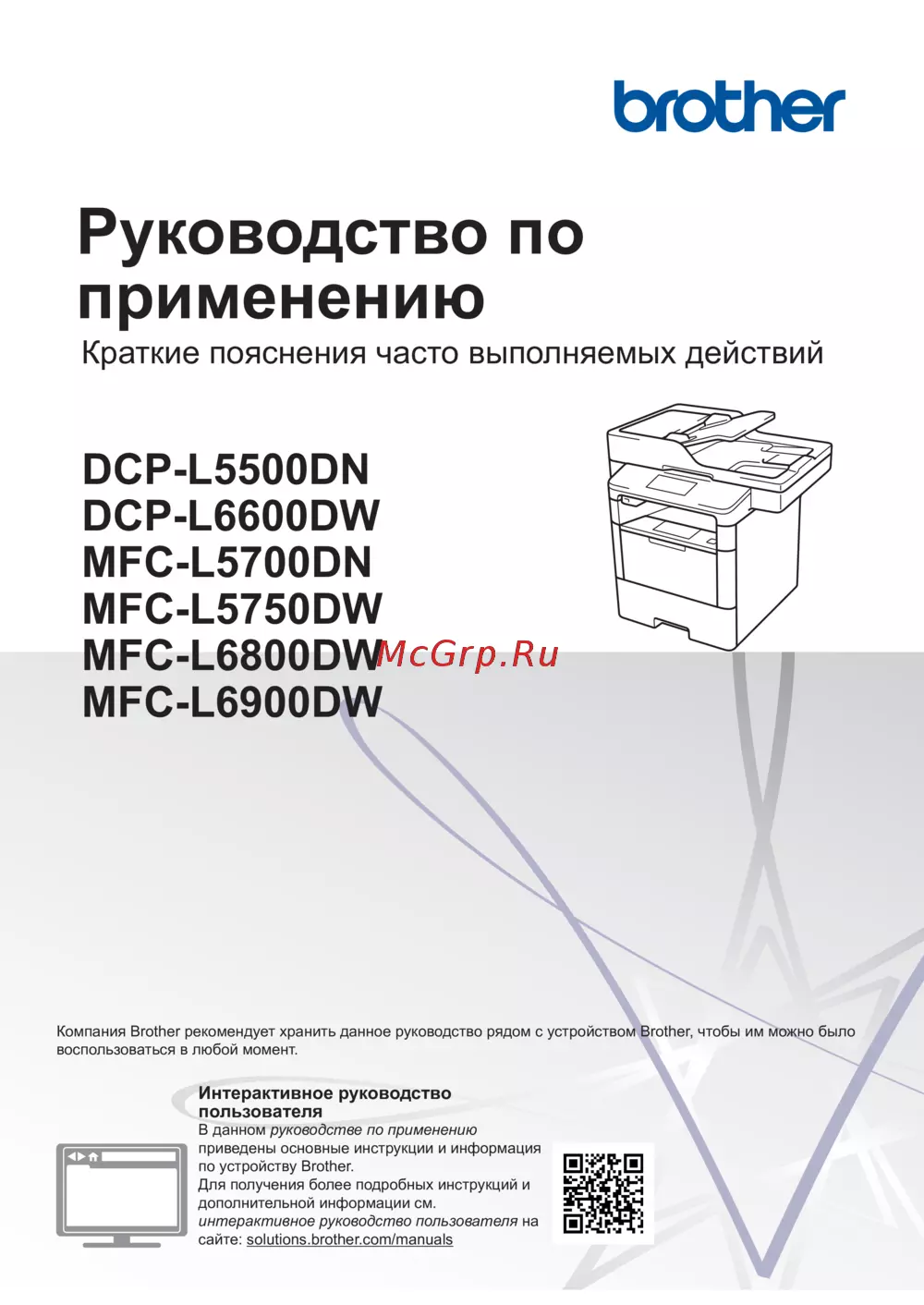 - Руководство по применению dcp l5500dn dcp l6600dw mfc l5700dn mfc l5750dw mfc l6800dw mfc l6900dw p.1