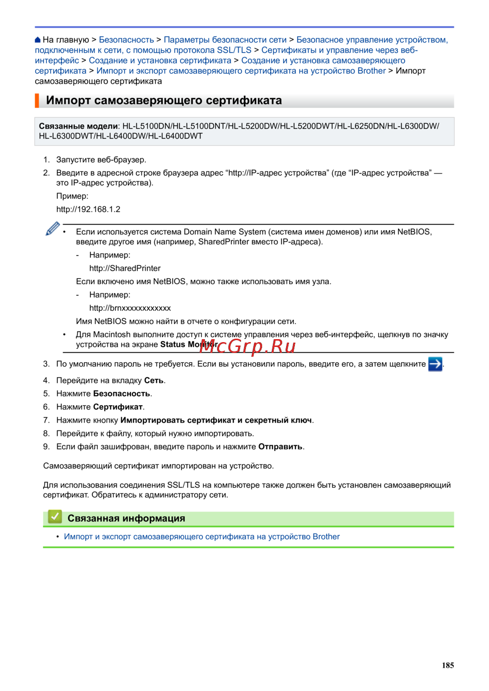 Brother HL-L5100DN [190/407] Связанная информация