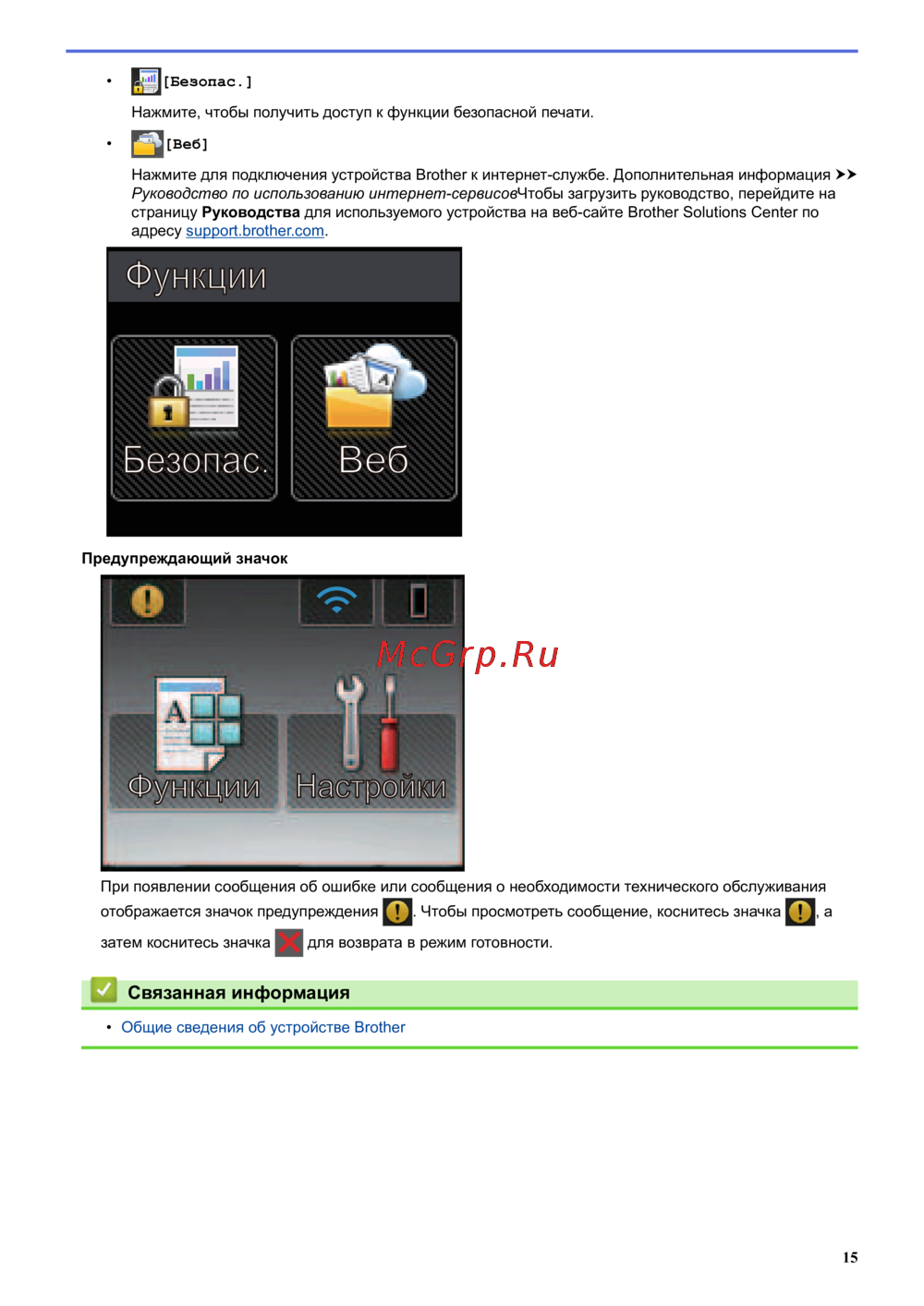 Нажмите для подключения устройства Brother к интернет-службе. Дополнительная информация uu