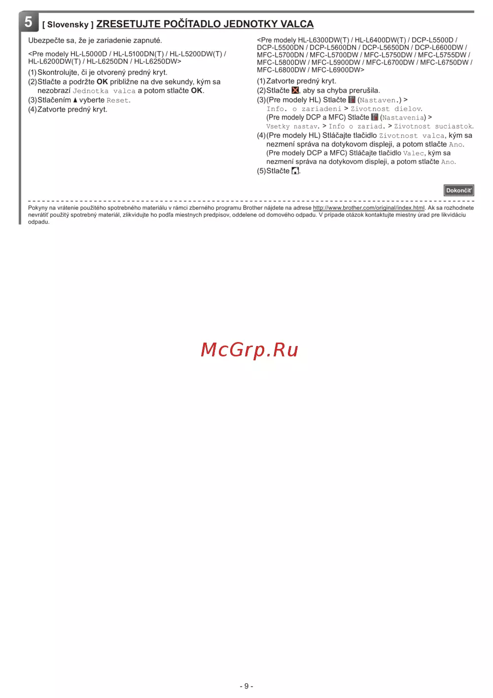 Brother HL-L5100DN [10/11] Zresetujte počítadlo jednotky valca