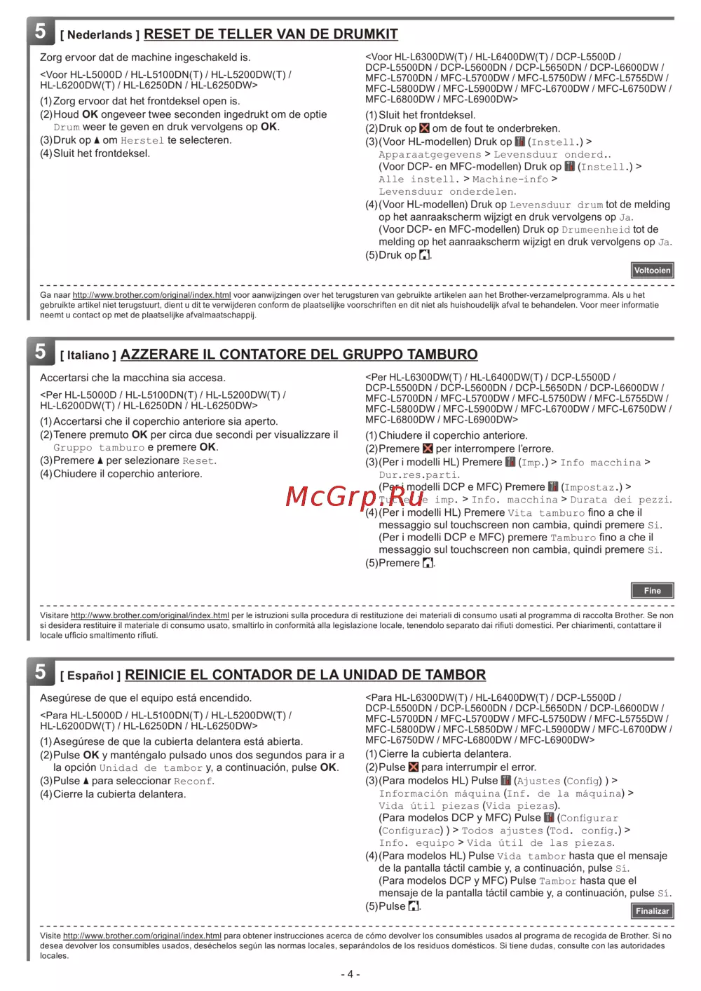 MFC-L5800DW / MFC-L5900DW / MFC-L6700DW / MFC-L6750DW /