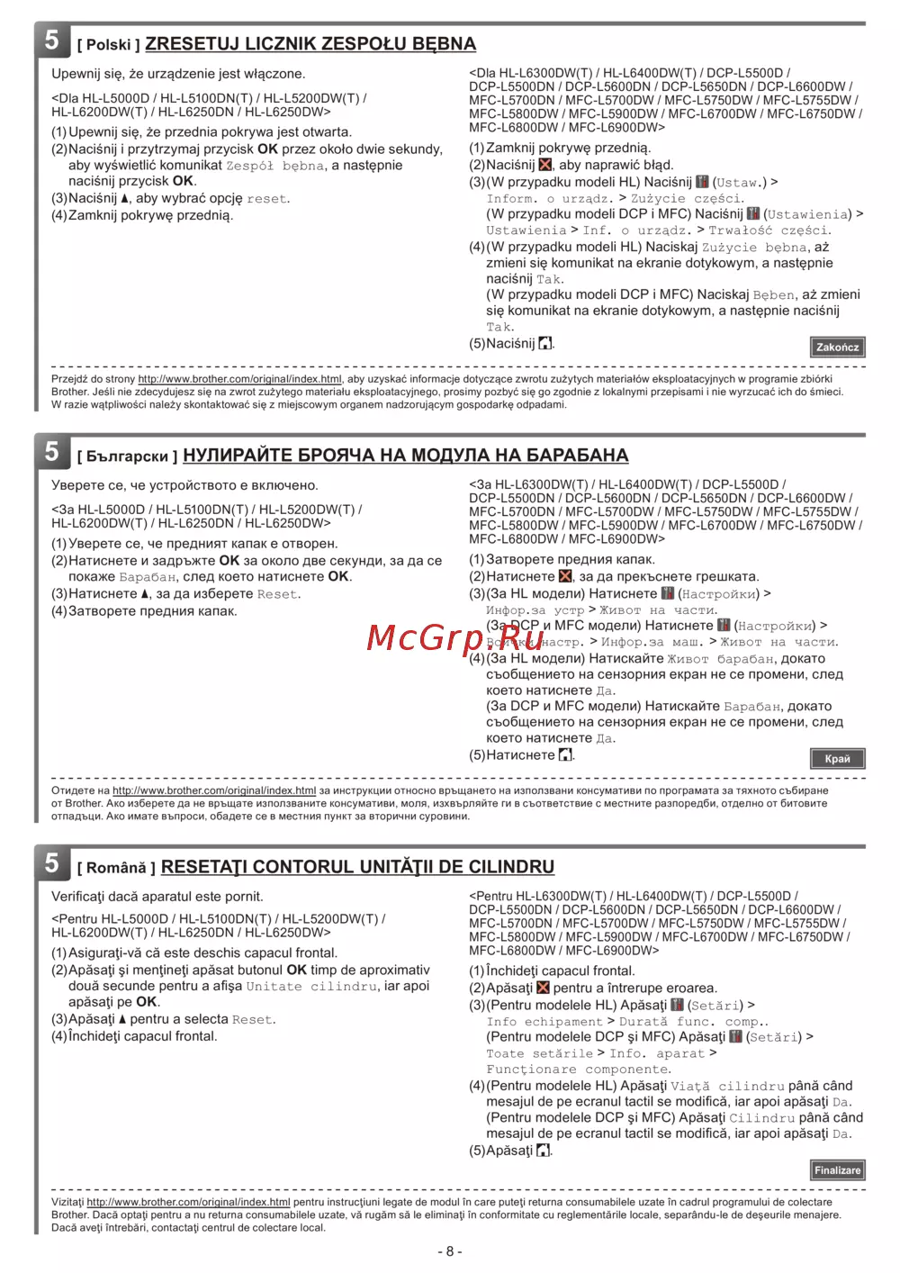 MFC-L5800DW / MFC-L5900DW / MFC-L6700DW / MFC-L6750DW /